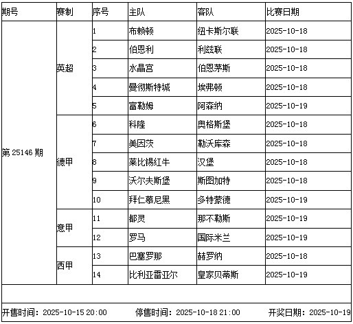 2025-10-17 16:05:43传足胜负彩第25146期看点:德甲国家德比 罗马大战国米