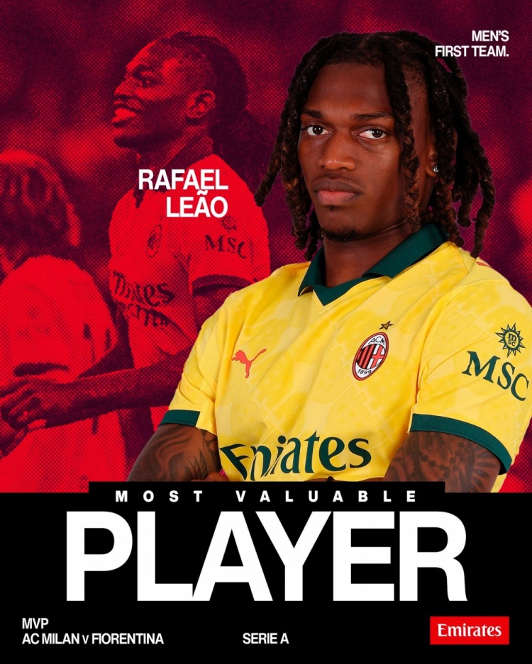 实至名归!莱奥当选对阵佛罗伦萨一役米兰队内最佳球员