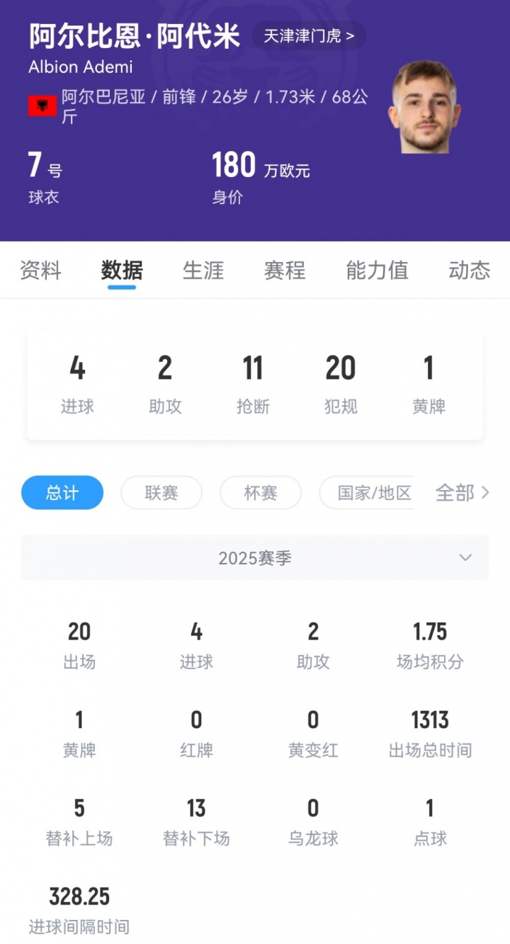 2025-11-25 16:00:17直播吧:天津津门虎外援前锋阿代米已与深圳新鹏城签约
